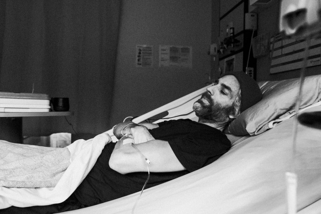 I got to know my hospital neighbor who had stage 4 Cancer, someone my same age, a father to 3 children, a lover of music and technology and from what I could tell a really cool guy. On my last day I asked if I could take his portrait and he agreed, a quiet moment of connection in an otherwise isolating experience. We had brief but deep conversations, and my heart is still thinking of him. I am so grateful he allowed me to capture this moment for him. (photos of Matt shared with permission).